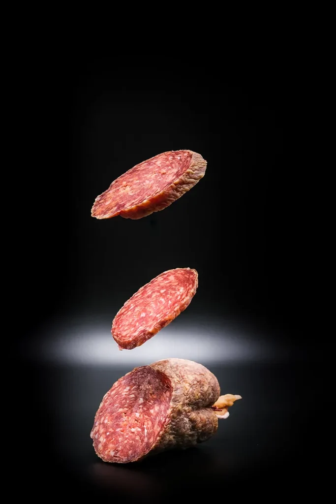 ll Salame Non Lardellato Monterotti viene ottenuto con tagli scelti di spalla di suino, macinata ed insaporita con sale, pepe e altre spezie. Un gusto avvolgente, affinato dal paziente lavoro della stagionatura naturale, levigato dal tempo e da una tradizione che affonda le sue radici nella più autentica memoria contadina, garanzia di genuinità.